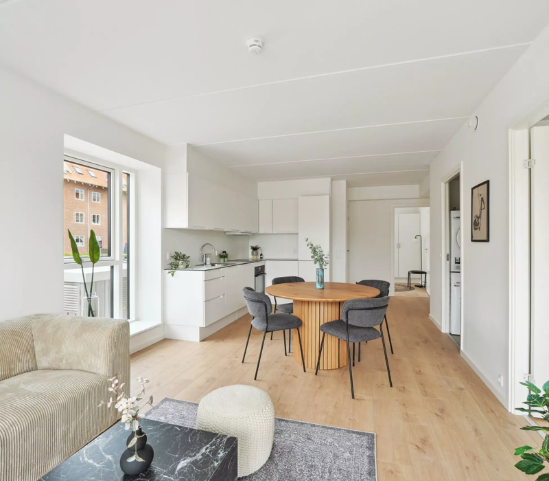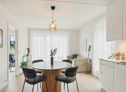 Boligerne er lavet med fokus på kvalitet, funktionalitet og grønne omgivelser, så du kan bo godt – med omtanke for både hverdagen og miljøet. Lejlighederne er klar til indflytning, og du flytter i et hjem, hvor komfort og hverdag smelter sammen.