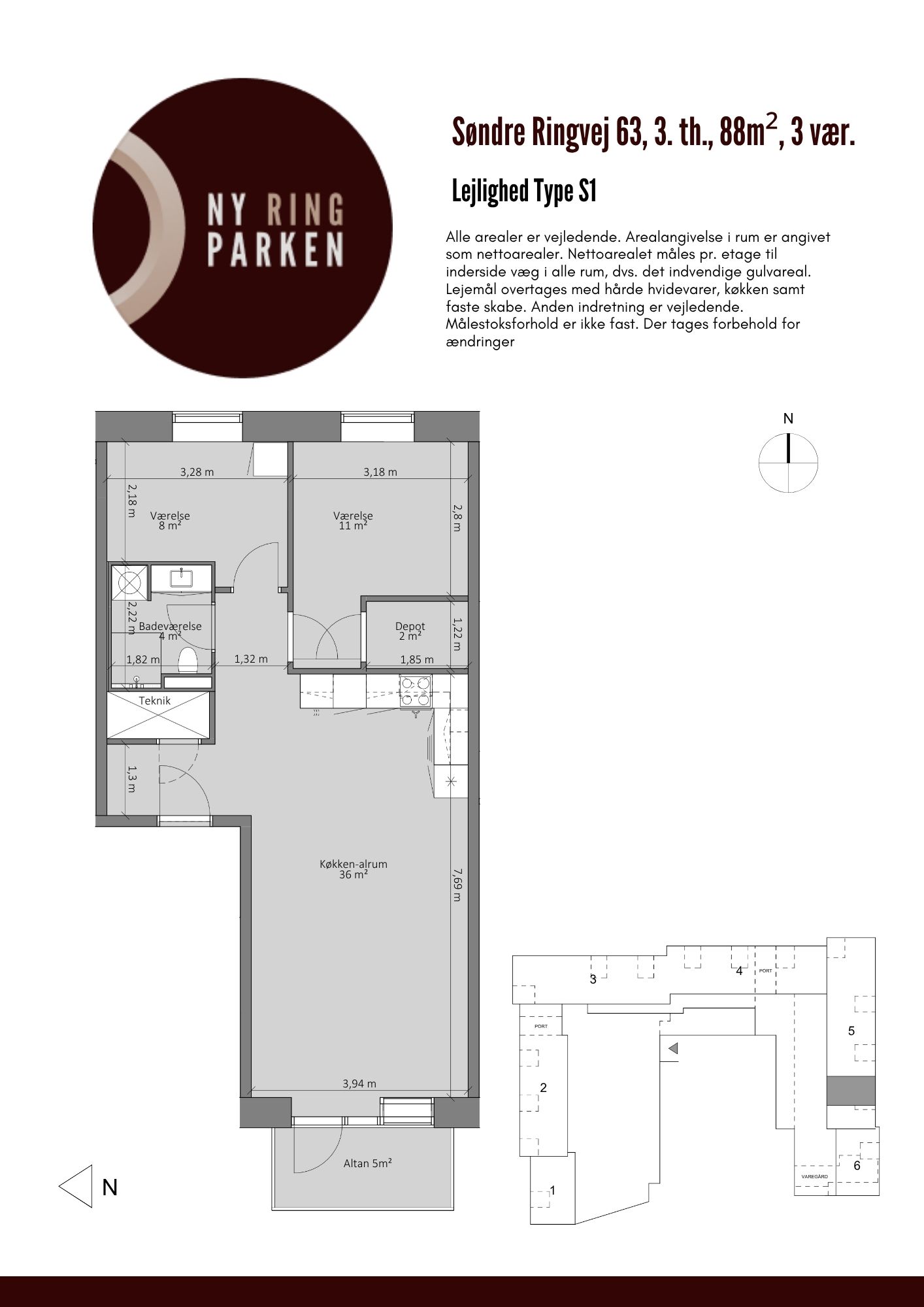 Bemærk at billederne kan være af en tilsvarende boligtype, hvorfor vi henviser til plantegningen og altid opfordrer til du oplever lejemålene ved selvsyn. Materialerne er dog de samme i alle enheder, med små variationer.