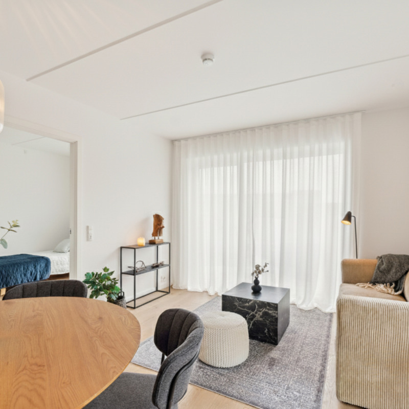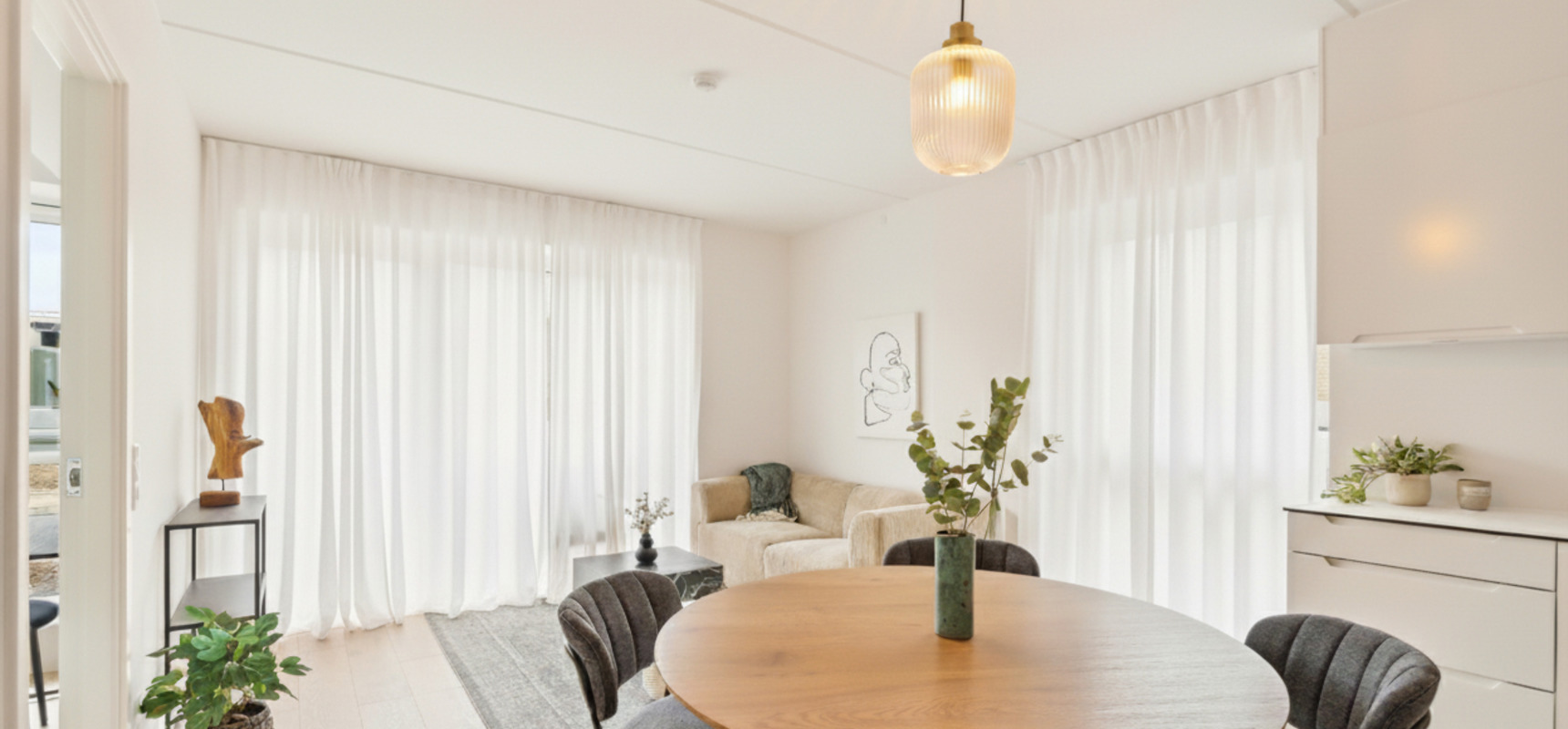 Boligerne er lavet med fokus på kvalitet, funktionalitet og grønne omgivelser, så du kan bo godt – med omtanke for både hverdagen og miljøet. Lejlighederne er klar til indflytning, og du flytter i et hjem, hvor komfort og hverdag smelter sammen.