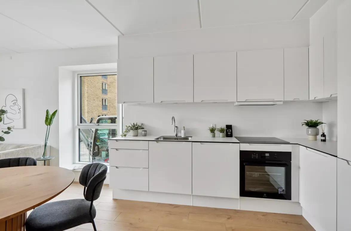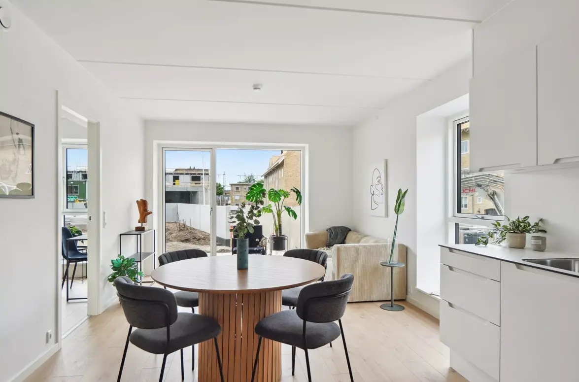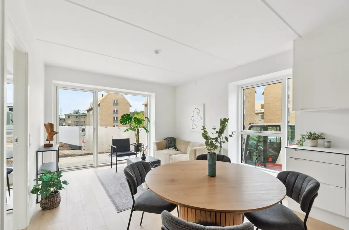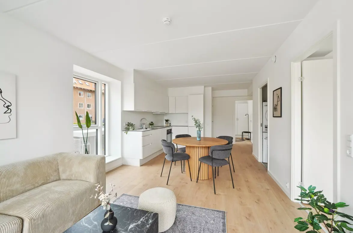 Bemærk at billederne kan være af en tilsvarende boligtype, hvorfor vi henviser til plantegningen og altid opfordrer til du oplever lejemålene ved selvsyn. Materialerne er dog de samme i alle enheder, med små variationer.