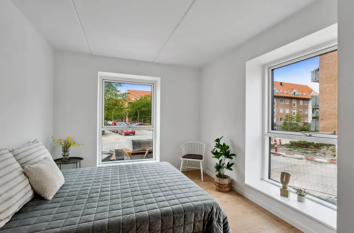 Ny Ringparken ligger i et roligt og trygt kvarter tæt på både by og natur. Du bor ca. 1,5 km fra Roskilde Station – en cykeltur på omkring 5 minutter – og herfra tager det cirka 25 minutter med tog til København H. I nærområdet finder du indkøb, skole, daginstitutioner og grønne stier, der fører dig direkte til Ringparken og den smukke sø i midten. Med nem adgang til motorvej E20 er du hurtigt videre mod København eller resten af Sjælland – en bekvem base midt i hverdagen.