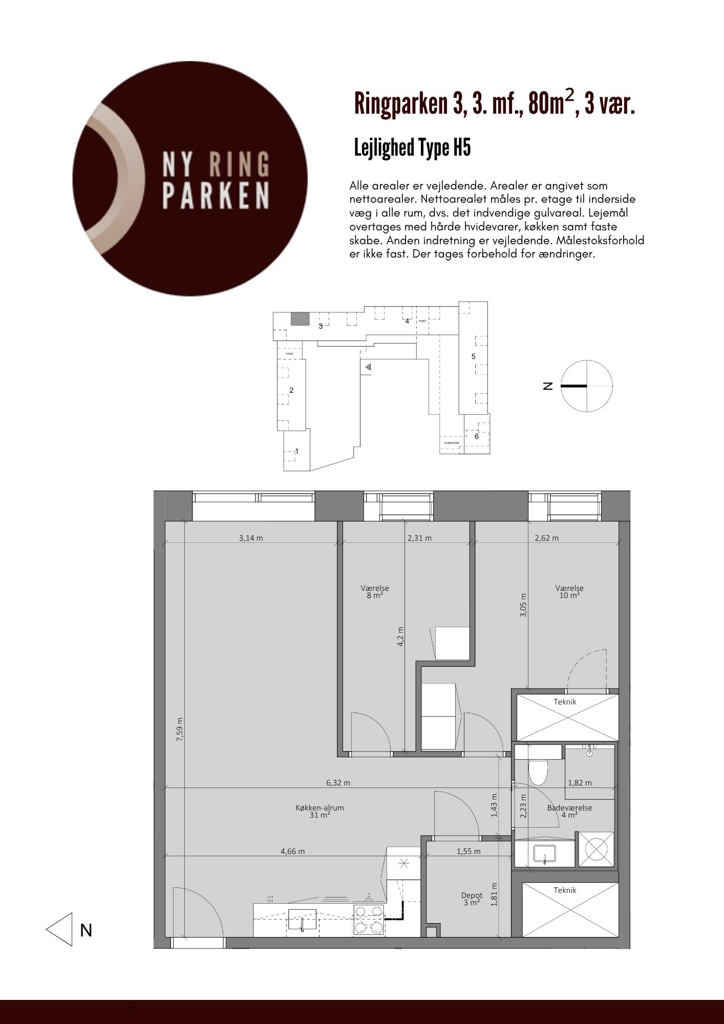 Bemærk at billederne kan være af en tilsvarende boligtype, hvorfor vi henviser til plantegningen og altid opfordrer til du oplever lejemålene ved selvsyn. Materialerne er dog de samme i alle enheder, med små variationer.